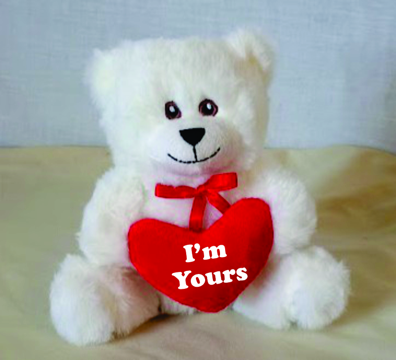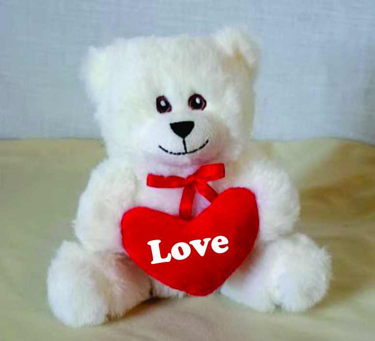 6″ SITTING w/EMBROIDERED EYES HOLDING A 2″ HEART