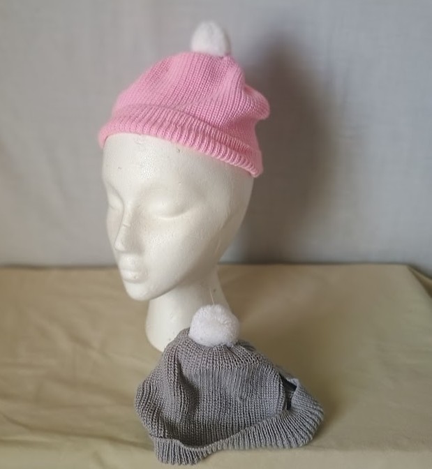 SMALL KNIT HATS COMES IN 2 ASSORTED COLORS (PINK, GREY)